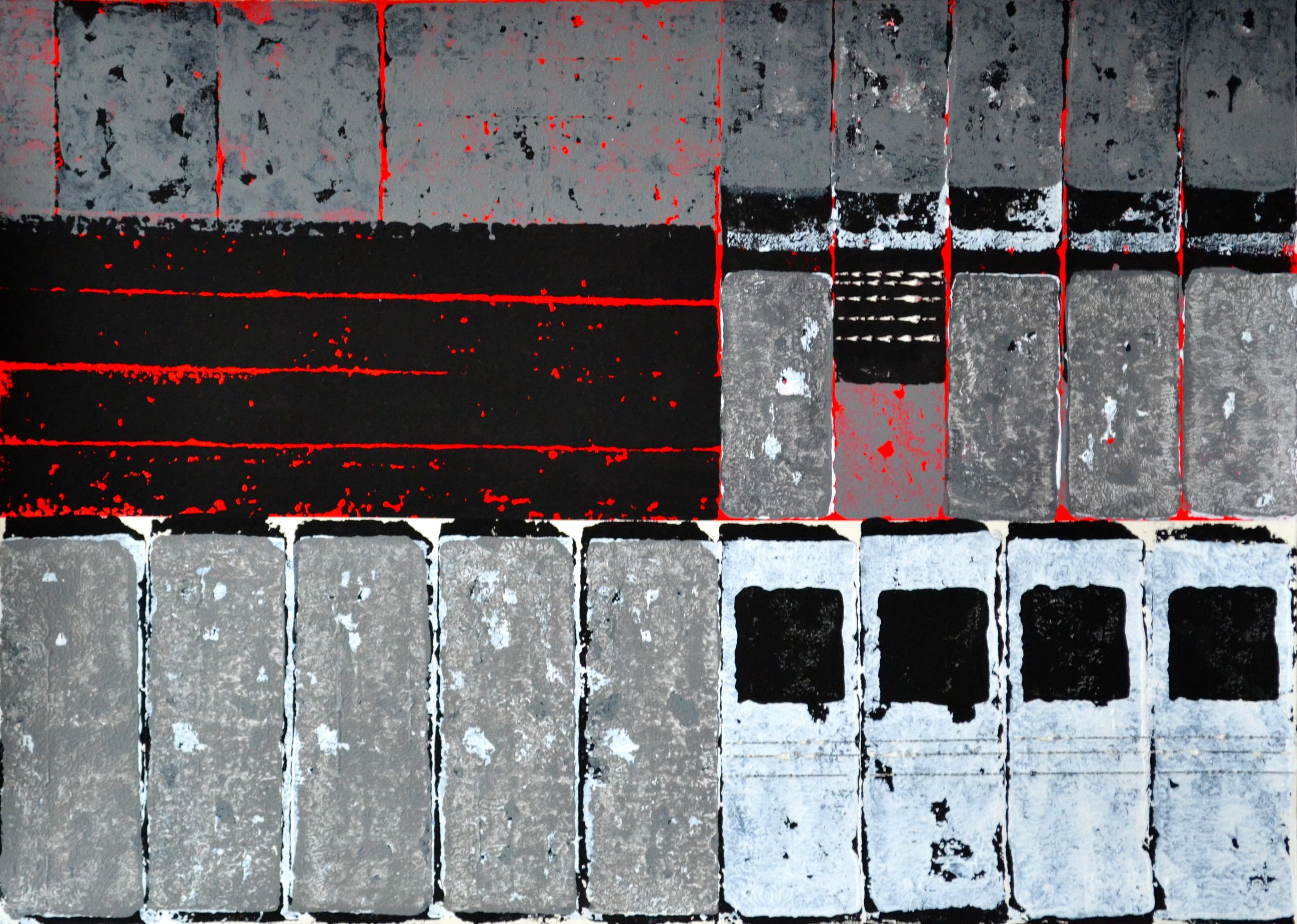 Dans les interrogations sur notre place dans les désordres, les organisations et les calculs du « Monde en Régime Turbulent 2 » les « Bibliothèques » figurent l’agencement d’éléments porteurs de sens. Elles sont la description la plus directe de notre désir d’inventorier le monde, d’en apercevoir les arcanes et parfois de croire en sa maîtrise. Mais c’est aussi le lieu par excellence des rapports contenu/contenant, matériel/immatériel qui habitent toutes images. Nos « Bibliothèques » deviennent métaphores de notre exploration du monde. Avec le blanc et le noir comme fondement et structuration, ce travail se construit par une succession de plans. : lieu de rangement du livre, lieu d’organisation du langage. Ainsi la structure de l’image insiste sur les dispositions particulières de cet agencement. Le regard peut circuler dans l’image, en comprendre et en relier les différents éléments, mais en même temps éprouver le vertige de l’espace et de la profondeur sans fin d’une bibliothèque.